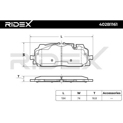 RIDEX 402B1161 Brake Pad Set for Audi - Front Axle