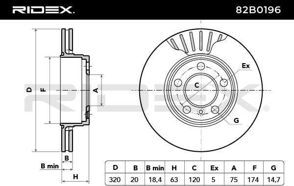 RIDEX 82B0196 Brake Disc 320,0x20mm, 5/6x120, Vented, without bolts/screws